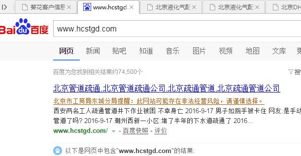 那一排黃色的字,“北京市工商局東城分局提醒”,這情況,以前真沒(méi)有遇見(jiàn)過(guò)。現(xiàn)在工商局也介入搜索結(jié)果了。