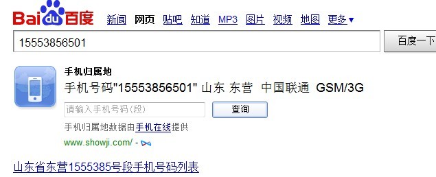 15553856501,這個手機號,今天給我發(fā)一條詐騙手機短信,內(nèi)容如下:“截止2012年3月10日:已減去你費用1500元,詳詢:0371-61117070《工行》”。 這種短信,我見多了,一看就是個騙子,工行的客服號是95588,是五位的。而騙子留的這個號碼,只是一個小靈通類的號碼。另外,工行如果給你發(fā)信息,應該也是用他們的客服 號發(fā)的,而不會用手機號發(fā)。所以,我鑒定這個信息是詐騙信息。 15553856501這個手機號,我也用百度查詢了,信息如下: