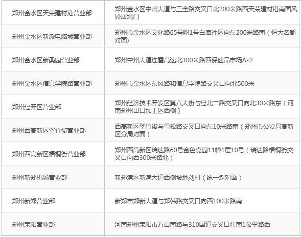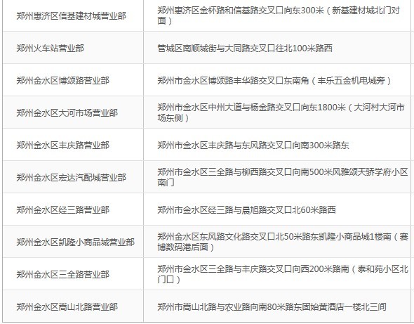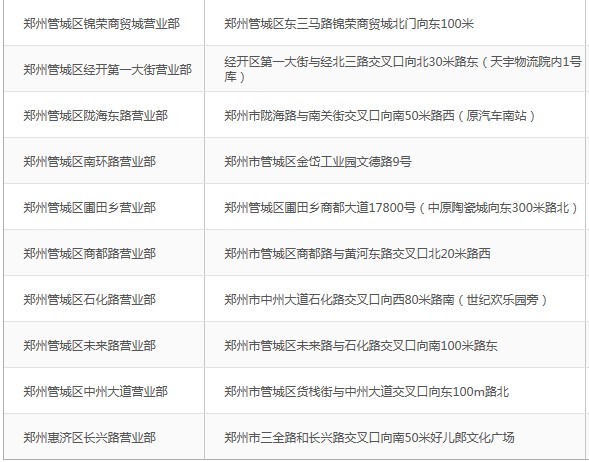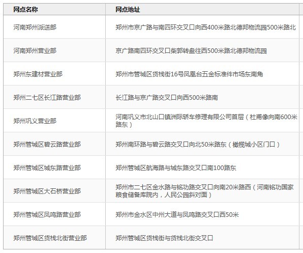 鄭州德邦物流營業(yè)網(wǎng)點(diǎn)表: