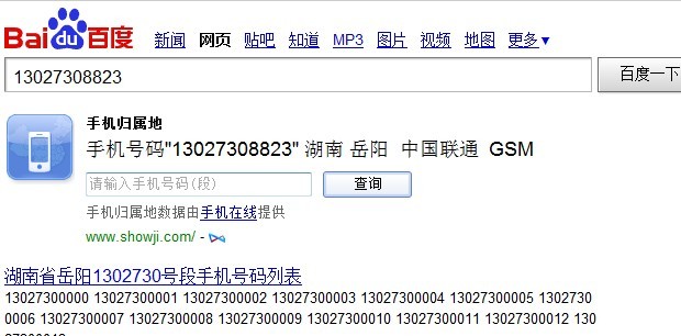 今天凌晨1點(diǎn)41分,13027308823這個(gè)手機(jī)號,給我打電話,響一聲就掛,我用百度查了一下,13027308823這個(gè)手機(jī)號的歸屬地信息是: