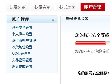 5、再點(diǎn)擊“賬戶管理”(在我是買家、我是賣家、我的樂享的右邊)