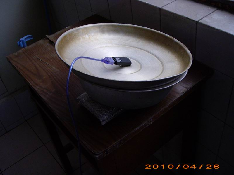 可以看到用銅絲把上網(wǎng)卡懸立起來后,1X信號比之前更好了,晚上上網(wǎng)的速度也能穩(wěn)定在80K/秒左右。 整個(gè)信號增強(qiáng)器,只花了18元購置一根5米的USB數(shù)據(jù)延長線,上面用的是一個(gè)蒸饅頭用的蒸鍋的鍋蓋,下面是一個(gè)鋁制的臉盆,用一個(gè)東西把下面的臉盆一邊墊高一點(diǎn),讓鍋蓋的弧面能朝向窗口方向。就是這么簡單的東西,使我終于體驗(yàn)到了所謂的電信3G高速上網(wǎng)。如果你也有我以前的問題,也可以試試。(藍(lán)浪原創(chuàng)文章,轉(zhuǎn)載請注明出處:lanlang.com/blog/u/lanlang)