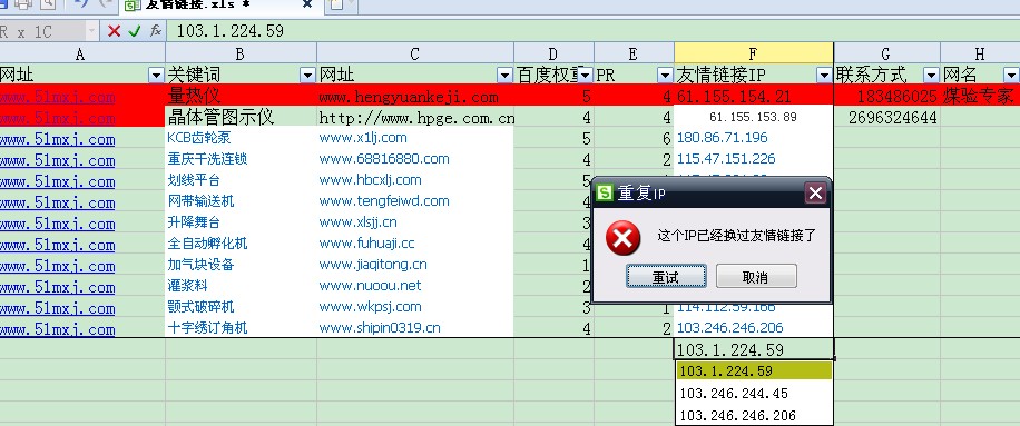 | No.1:不宜交換快照不正常的?煺帐菣z查站點(diǎn)整體表現(xiàn)的最好的數(shù)據(jù)之一?煺兆詈檬歉籼斓,三天之內(nèi)的快照次之。如果超出7天,甚至快照是很久之前的站,那么你就最好不要交換了,當(dāng)然我們也不要對快照做過于苛刻的要求,就拿6.28百度的K站事件,很多正規(guī)高權(quán)重的站點(diǎn)都可能出現(xiàn)快照不正常的情況。 No.2:不宜交換交叉鏈接。除非你有這方面的需求,否則的話筆者是堅(jiān)持不建議大家做這種友情鏈接。如果你的站點(diǎn)有大量的交叉鏈接,很容易被搜索引擎查出,并認(rèn)為你是在做站群,或者是購買鏈接。其所帶來的影響你懂得。對于這點(diǎn),筆者的建議是借助EXCEL文檔,做成一個(gè)友情鏈接記錄單,如下圖所示,我們可以清楚的記錄友鏈的交換情況。